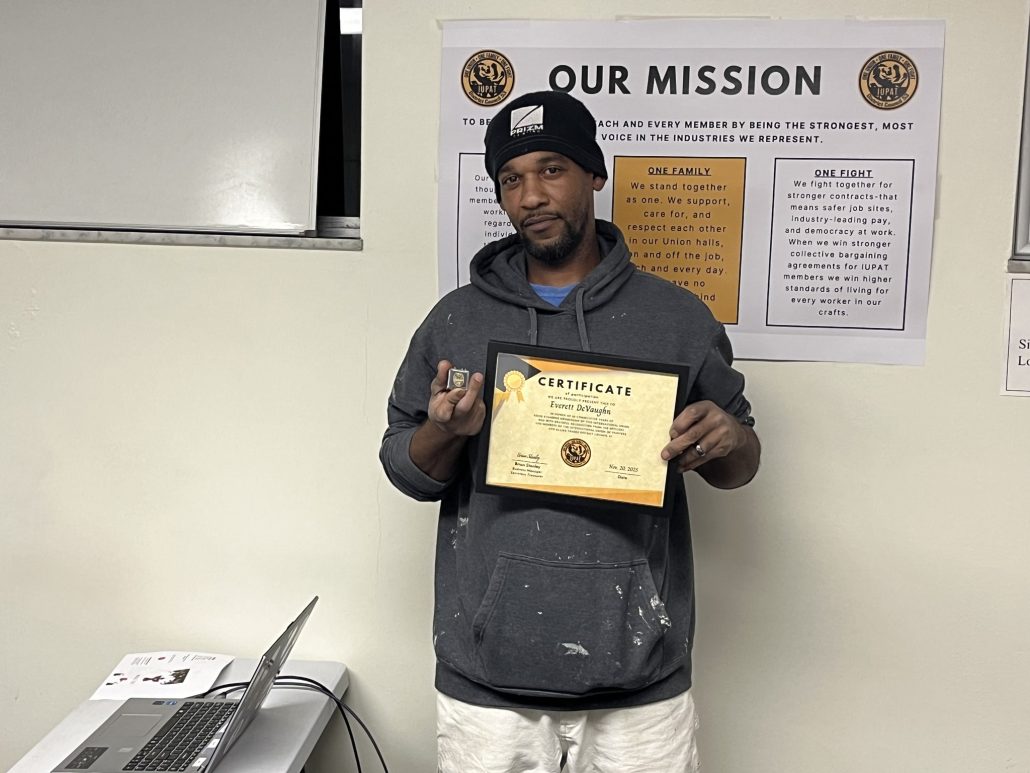 Congratulations to Everett DeVaughn on more than 20 years as a commercial painter with IUPAT DC 53.