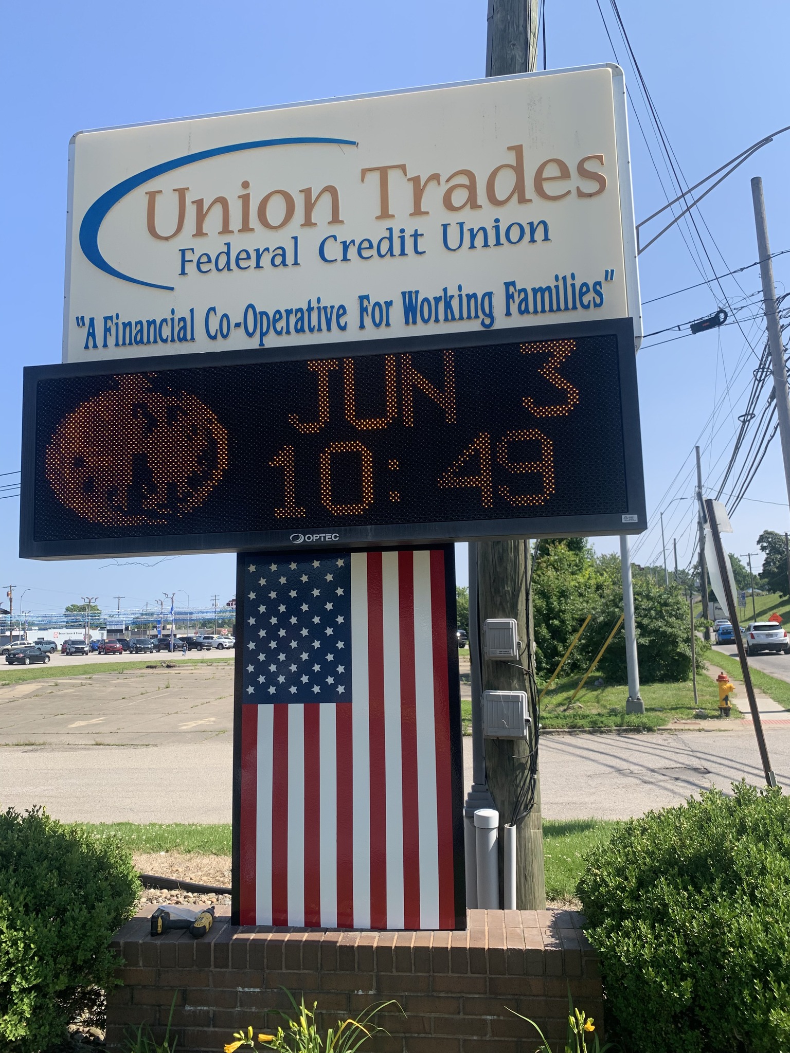 IUPAT DC 53 apprentices recently painted a USA flag on a sign for Union Trades Credit Union in Parkersburg, WV.