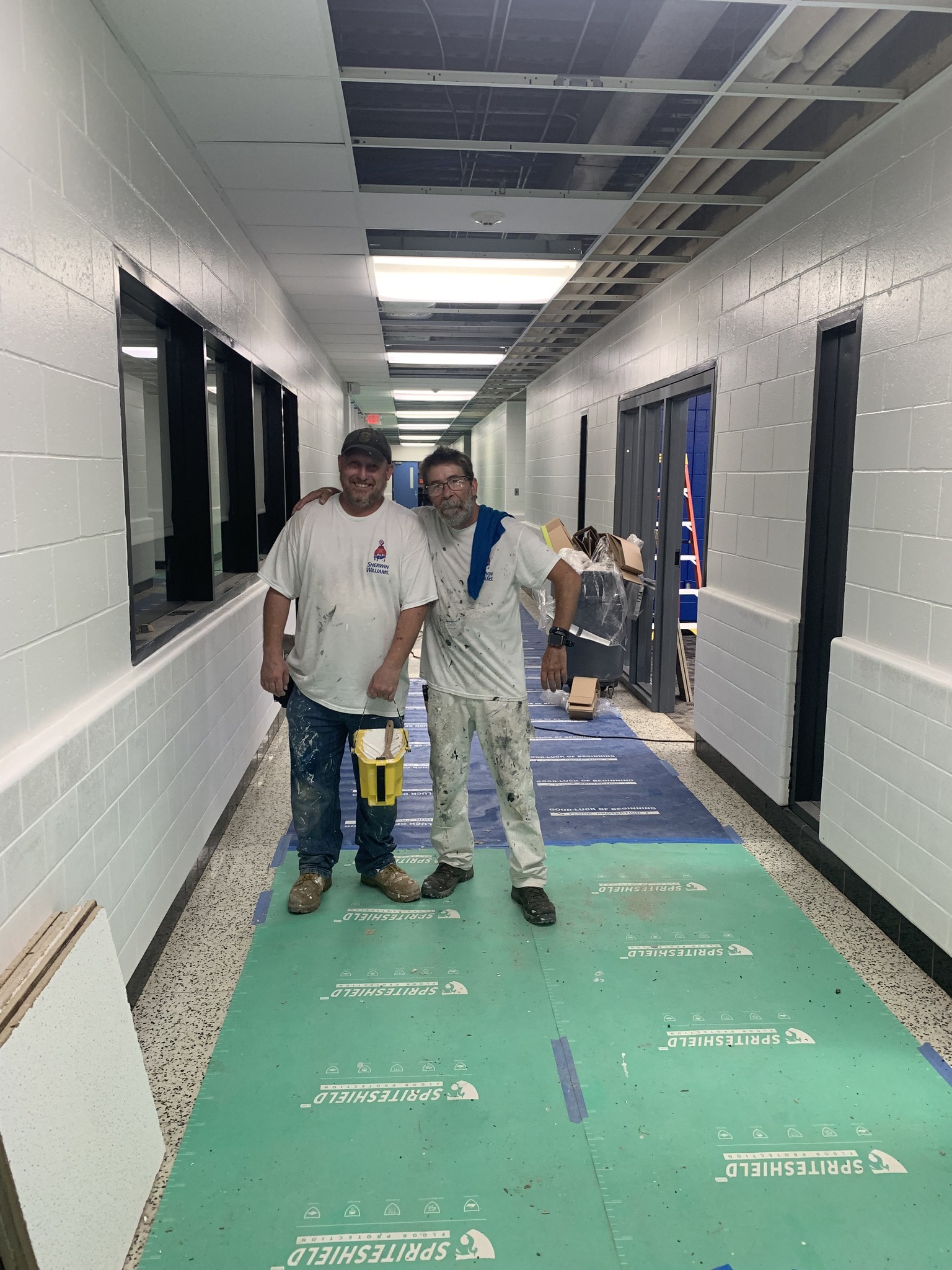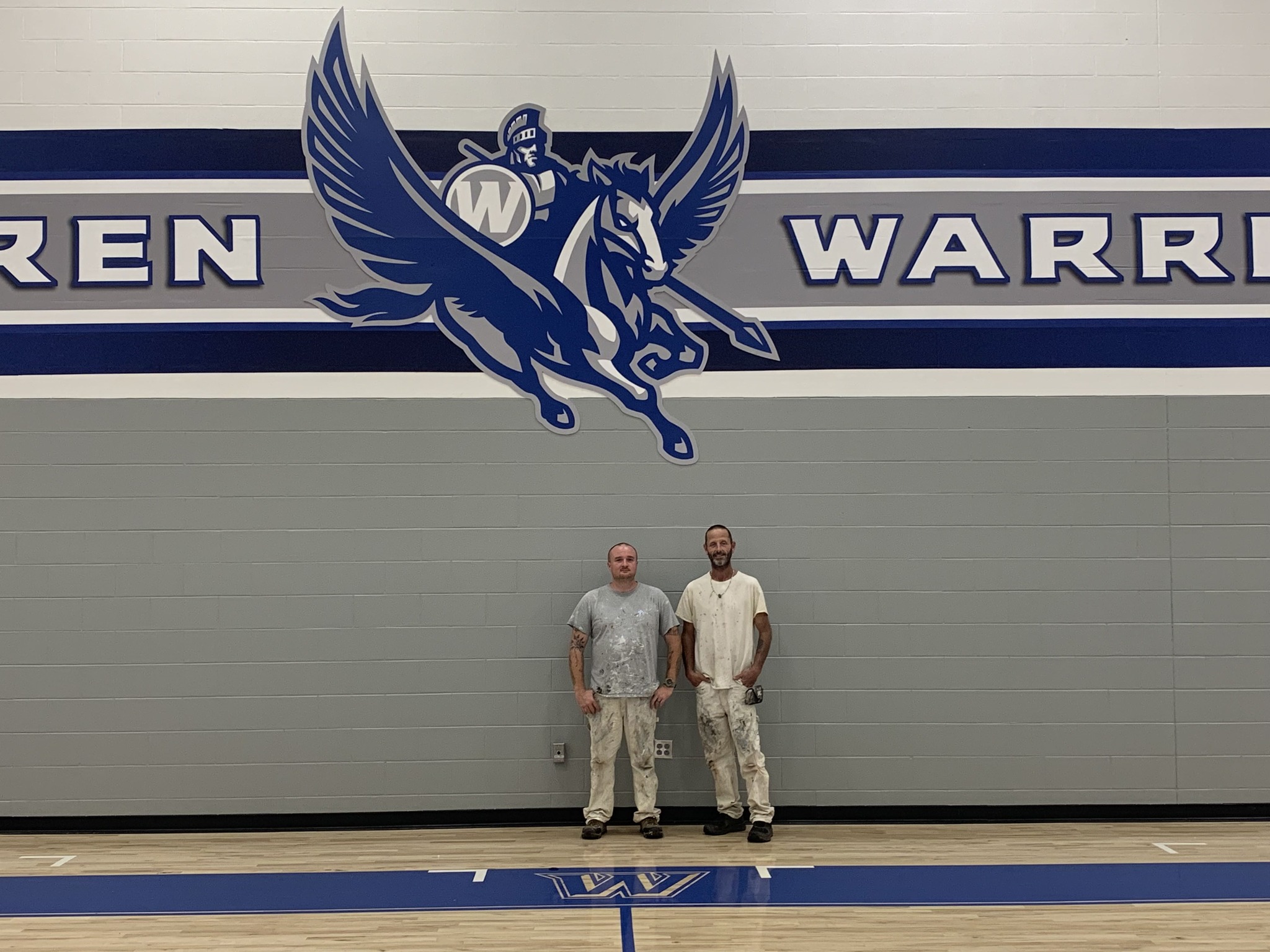 Brandon Barton and Doug Campbell are on site at Warren Elementary, working in the gymnasium.